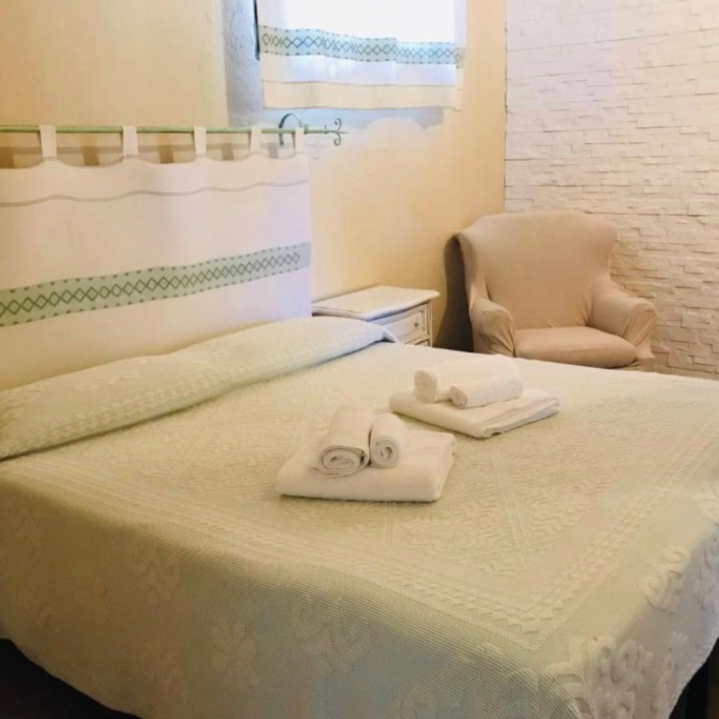 Der Name „Nuraghe“ verweist auf die prähistorischen Turmbauten Sardiniens, doch in diesem Fall handelt es sich um eine moderne Unterkunft, die traditionelle sardische Elemente mit zeitgemäßem Komfort verbindet. Die Unterkunft verfügt über wenige, individuell gestaltete Zimmer, einige davon direkt im „Nuraghe“ selbst, andere in den ehemaligen Pferdeställen der Anlage. Alle Zimmer sind mit eigenem Bad, Dusche, Bidet, Flachbild-TV und Klimaanlage ausgestattet.
